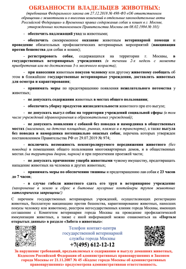 Делимся с вами обязанностями владельцев животных, а также правилами содержания и выгула.